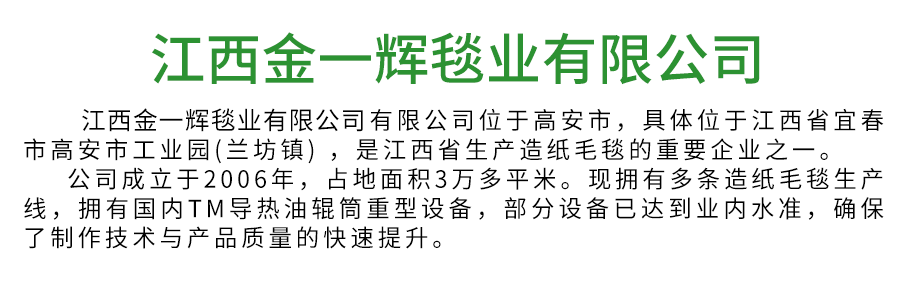 江西金一輝毯業(yè)有限公司位于高安市,具體位于江西省宜春市高安市工業(yè)園(蘭坊鎮) ,是江西省生產造紙毛毯的企業(yè)。